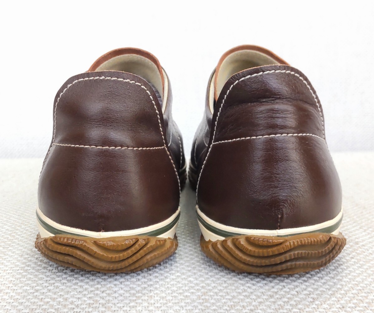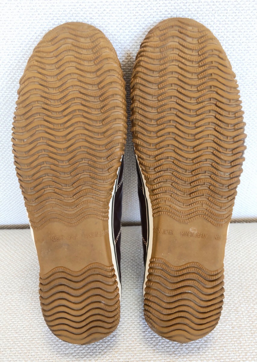 カンガルーレザーの柔らかさと抜群の伸縮性で、足が包み込まれるような感覚を実現しています。履き心地にこだわりつつ、外側にのみ牛ベロアのサイドラインをあしらったアシンメトリーなデザインでスタイリッシュに見せています。