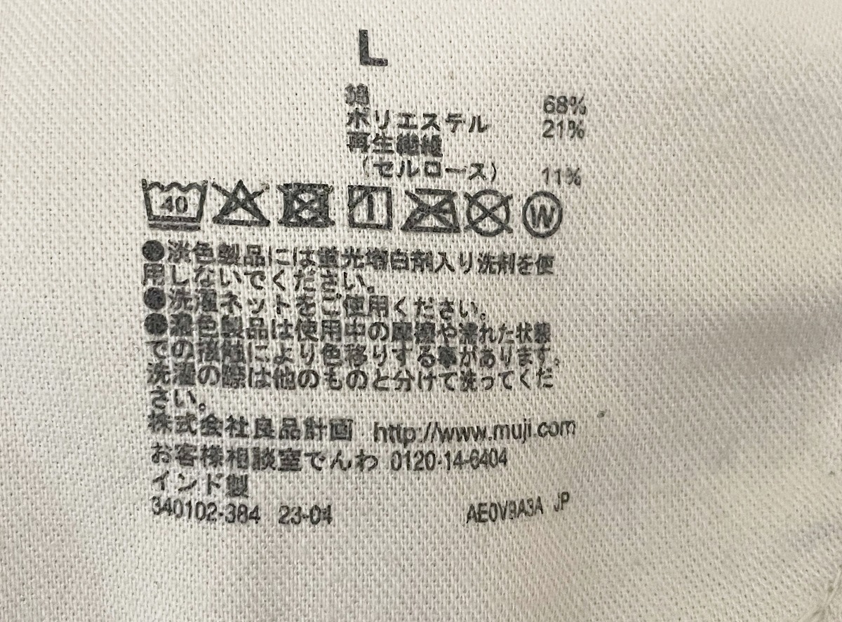 素材:綿68% ポリエステル21% 再生繊維(セルロース)11%