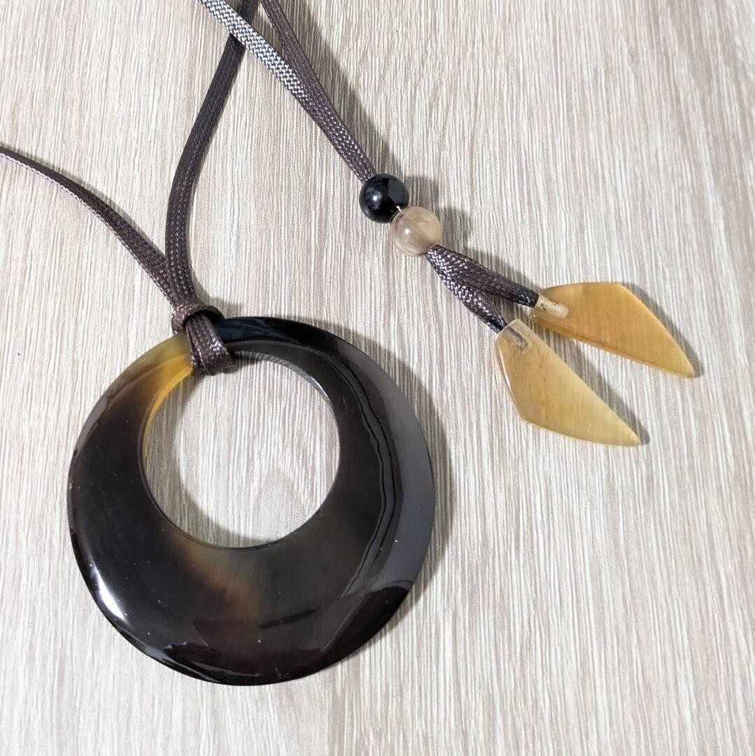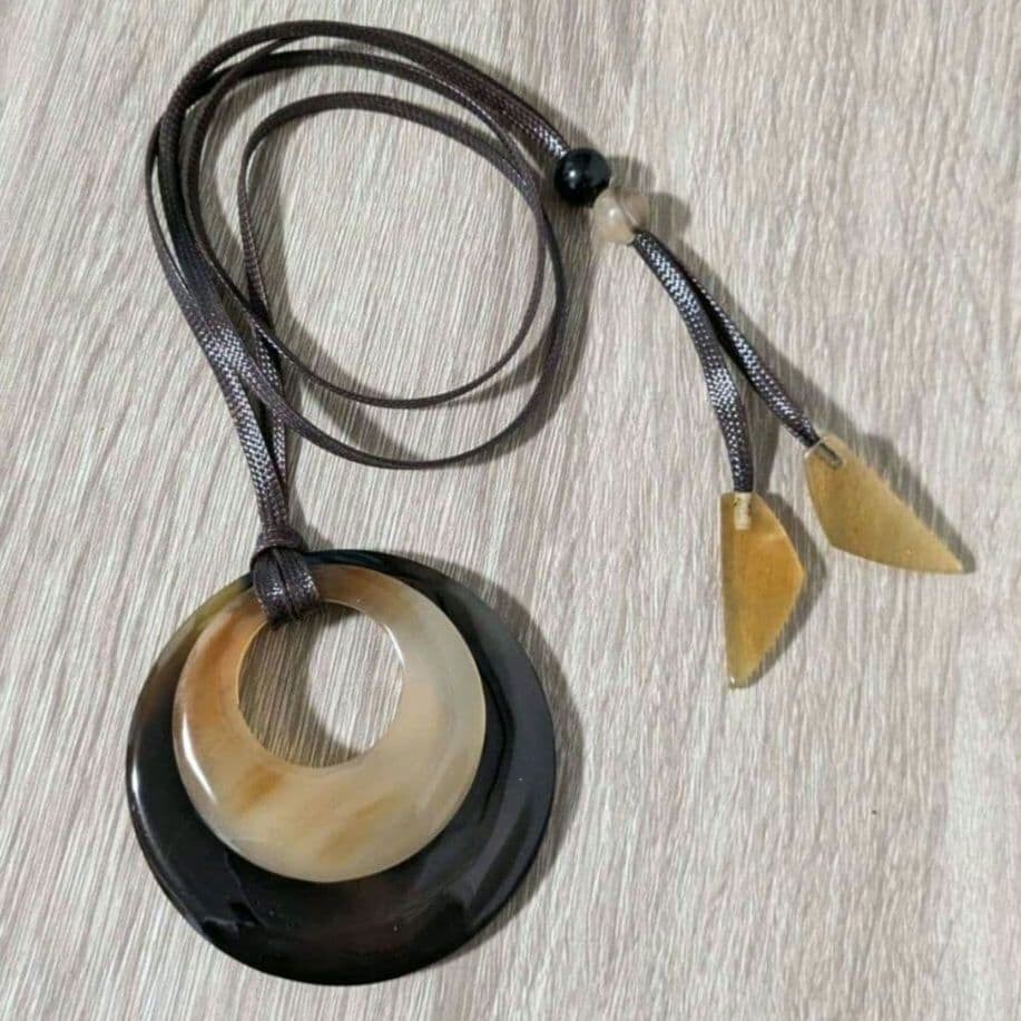 大小異なるサークルが連なる洗練されたデザインのバッファローホーンネックレスです