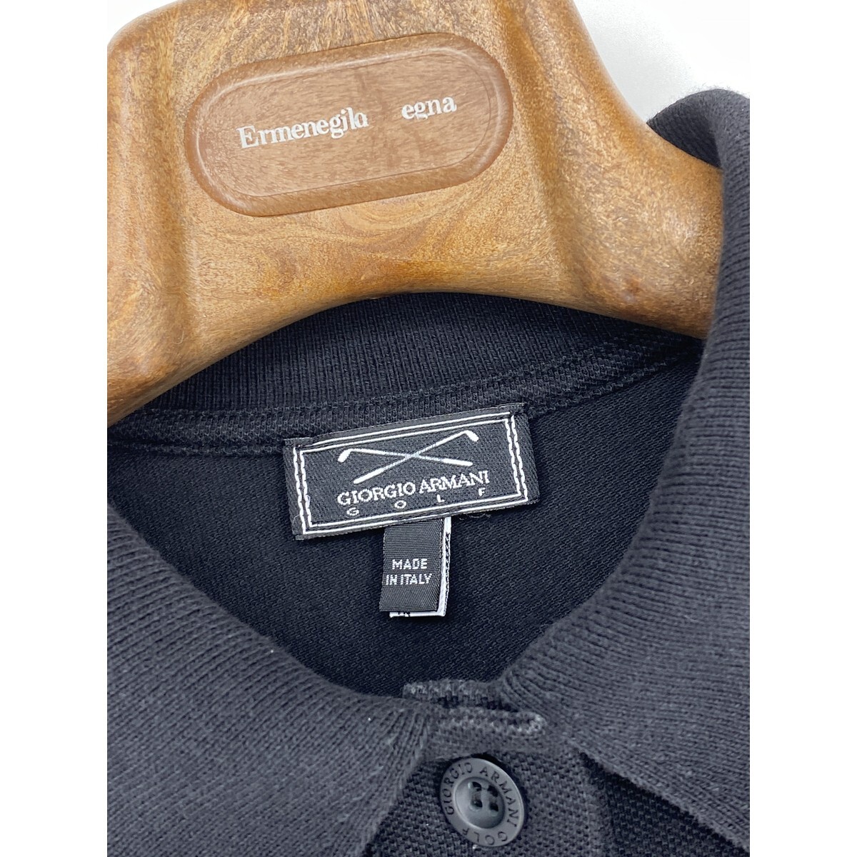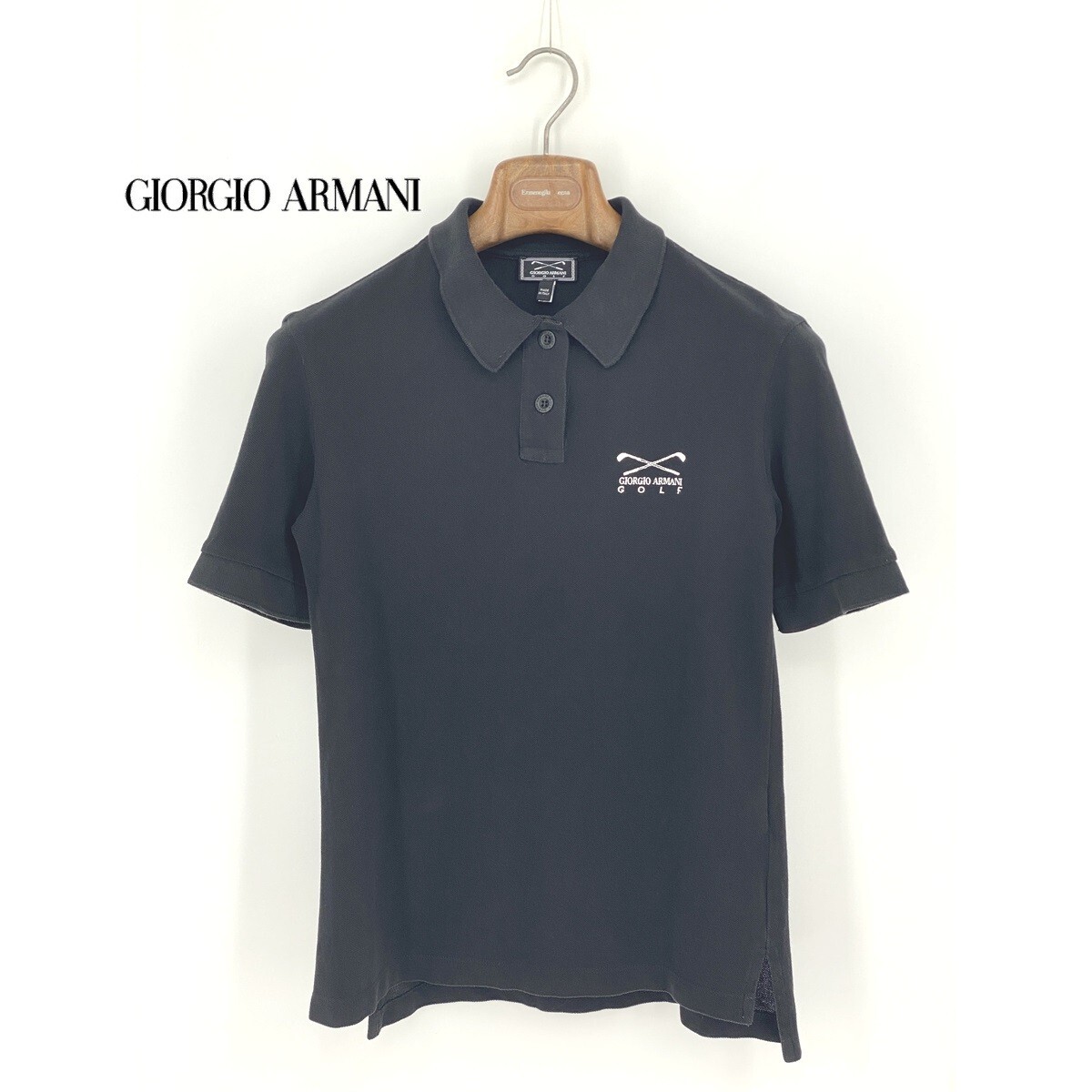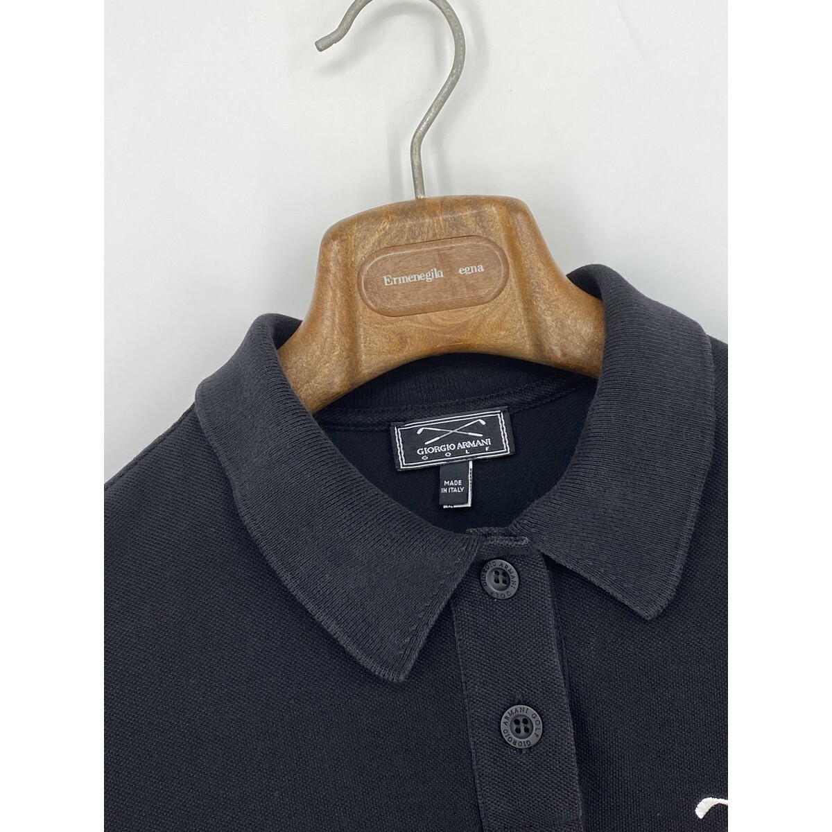 B0678/極美品 GIORGIO ARMANI ジョルジオアルマーニ コットン 胸ロゴ刺繍 半袖 Tシャツ カットソー ポロシャツ I38 M 黒 レディース ゴルフ