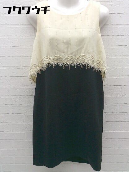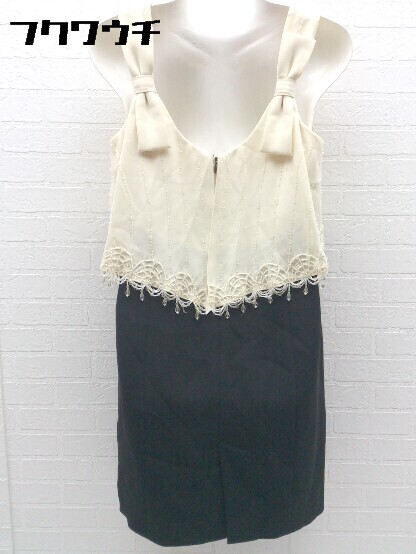 ◇ Grace Class ノースリーブ バックジップ ビジュー 膝丈 ワンピース サイズ36 ベージュ ブラック レディース