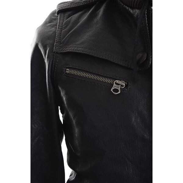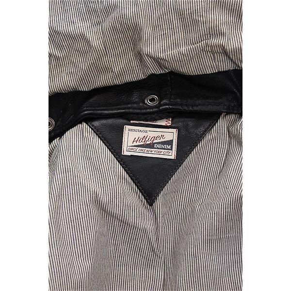 A4697/美品 秋冬 TOMMY HILFIGER DENIM トミーフィルフィガー ラムレザー フード付き ミリタリー ライダースジャケット 革ジャンS黒/メンズ