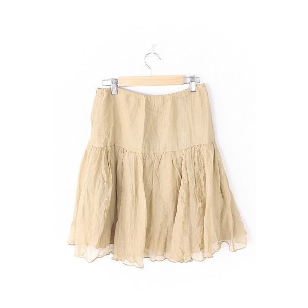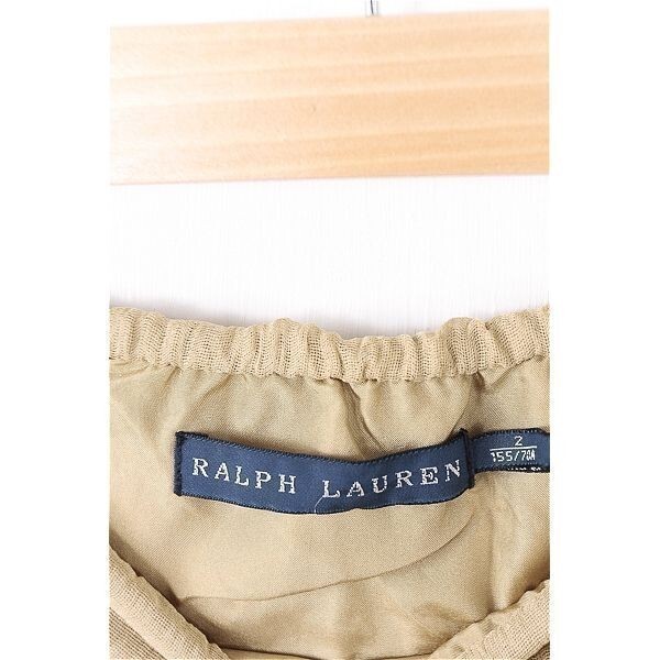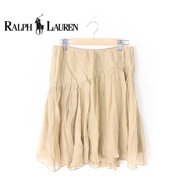 A3845/極美品 春夏 RALPH LAUREN ラルフ ローレン マルベリー シルク100% フレア ギャザー プリーツ 膝丈 スカート 2 S程 茶/レディース
