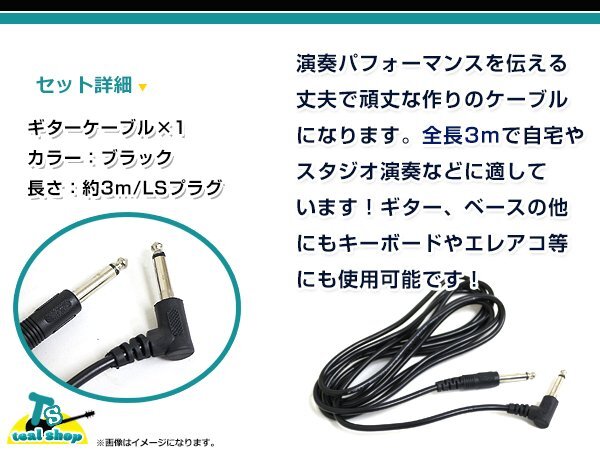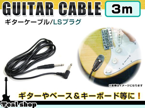 メール便 エレキギター エレアコ エレキベース キーボド等 シールド S/L型プラグ ギターケーブル シールド コード ブラック 3m 1本