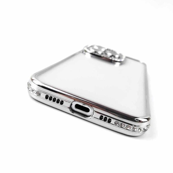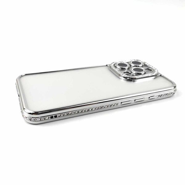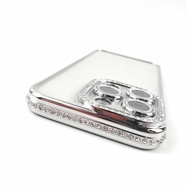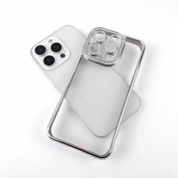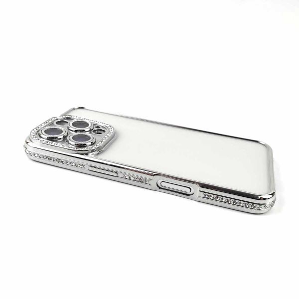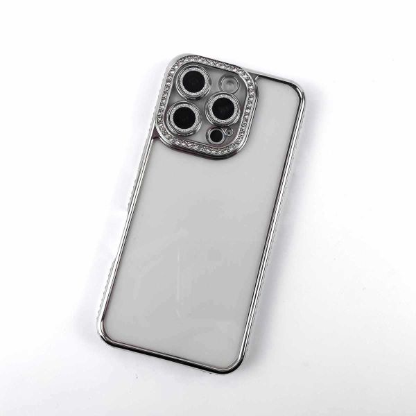 iPhone 16 pro用 保護ケース カバー キラキラ ラインストーン ゴージャス レンズ保護 ソフトケース シルバー