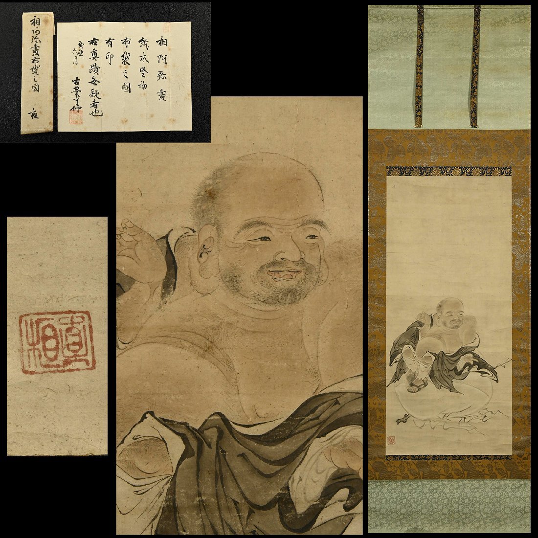 【永】b042【兵庫県の図書館や博物館の館長を歴任された歴史研究家遺族委託品】掛軸 相阿弥 布袋図鑑定証明有室町時代 花鳥画人物画日本画