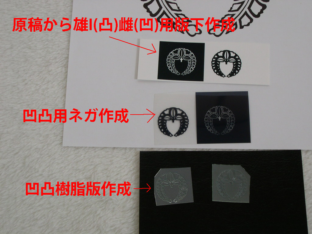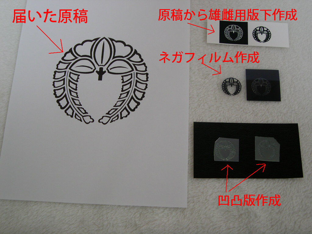 頂いた原稿から凹版と凸版の噛み合わせるために、片方をふとらせ、もう片方をやせさせます。