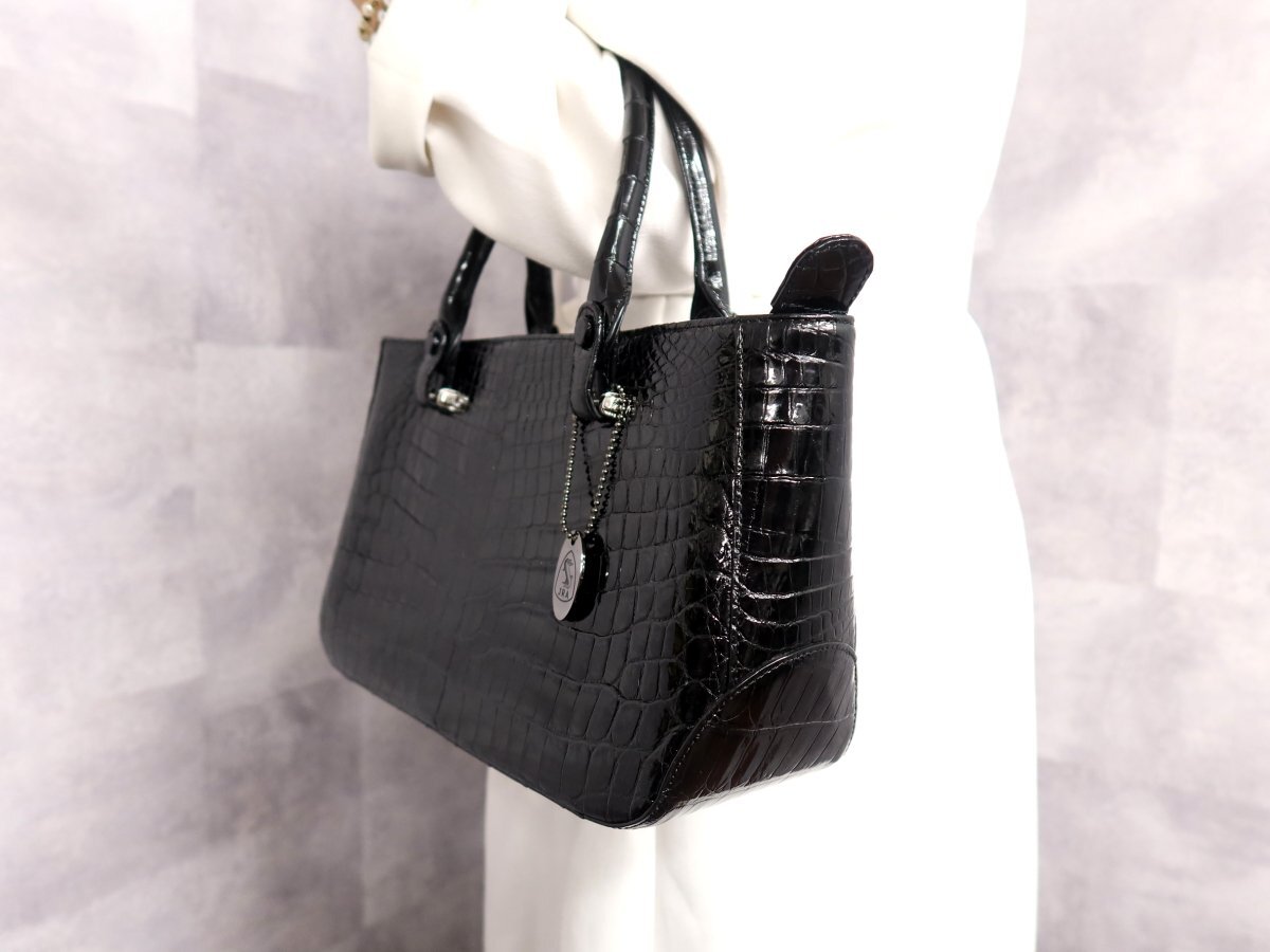 JRA 認定 シャイニング クロコダイル トート ハンド バッグ