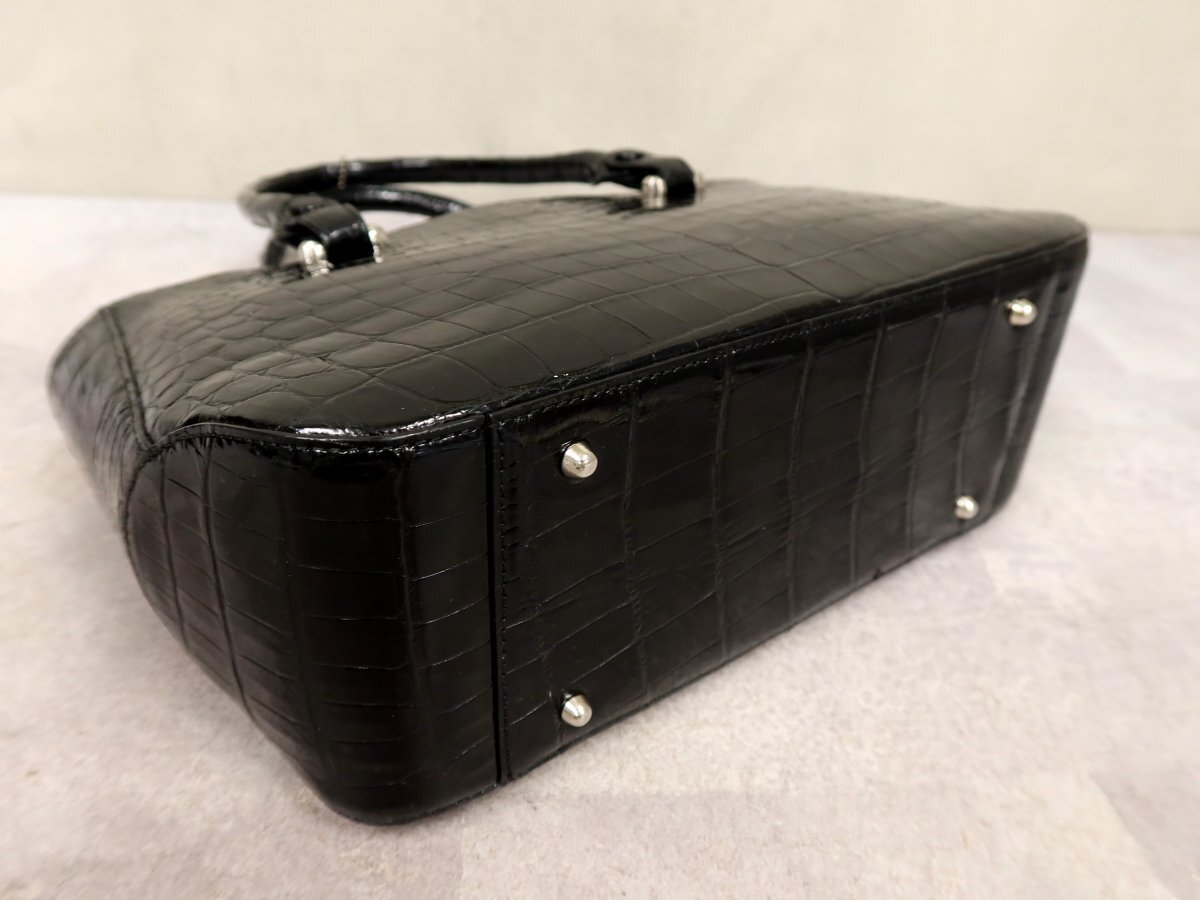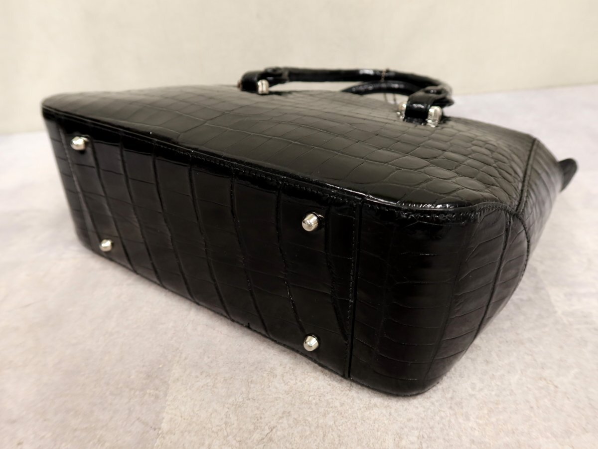 ●超美品●JRA 認定●シャイニング クロコダイル 本 ワニ 革●トート ハンド バッグ●黒●シルバー金具●腕掛け●収納 かばん●Js63147