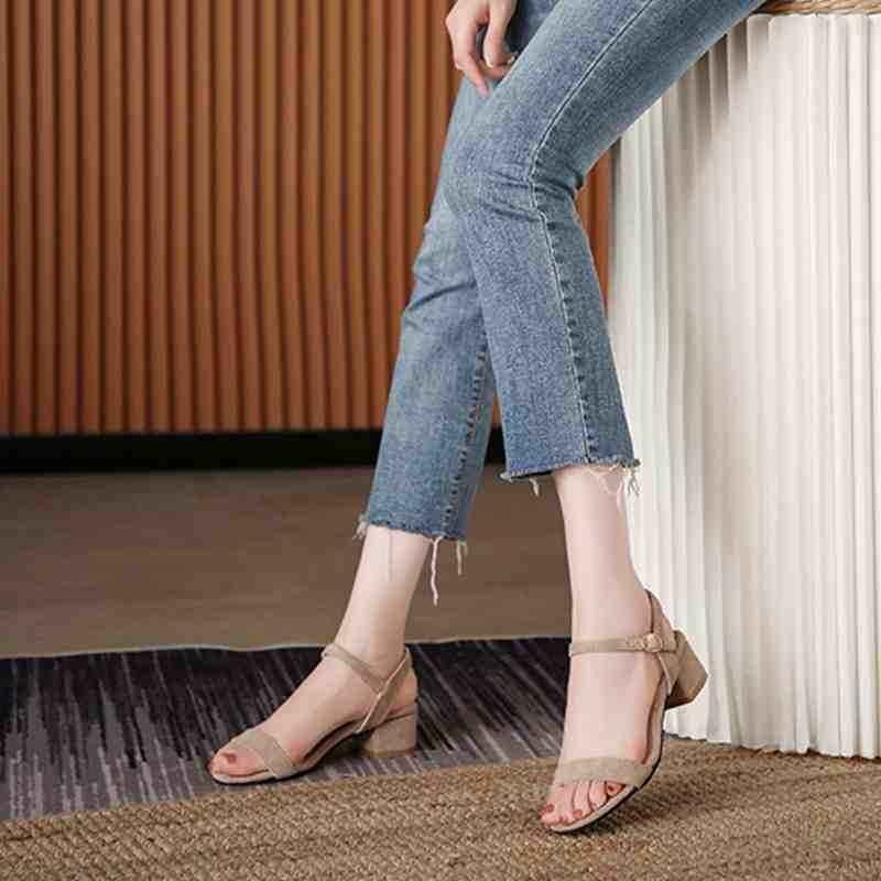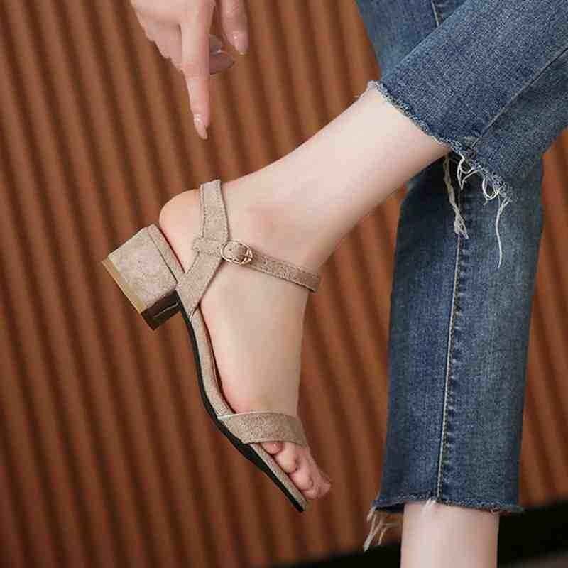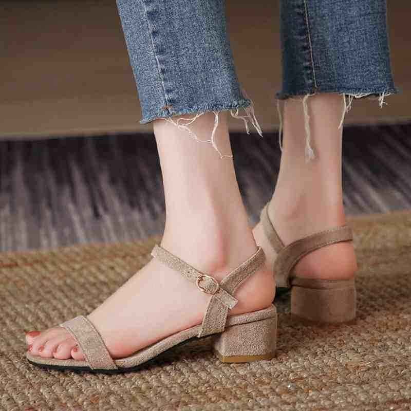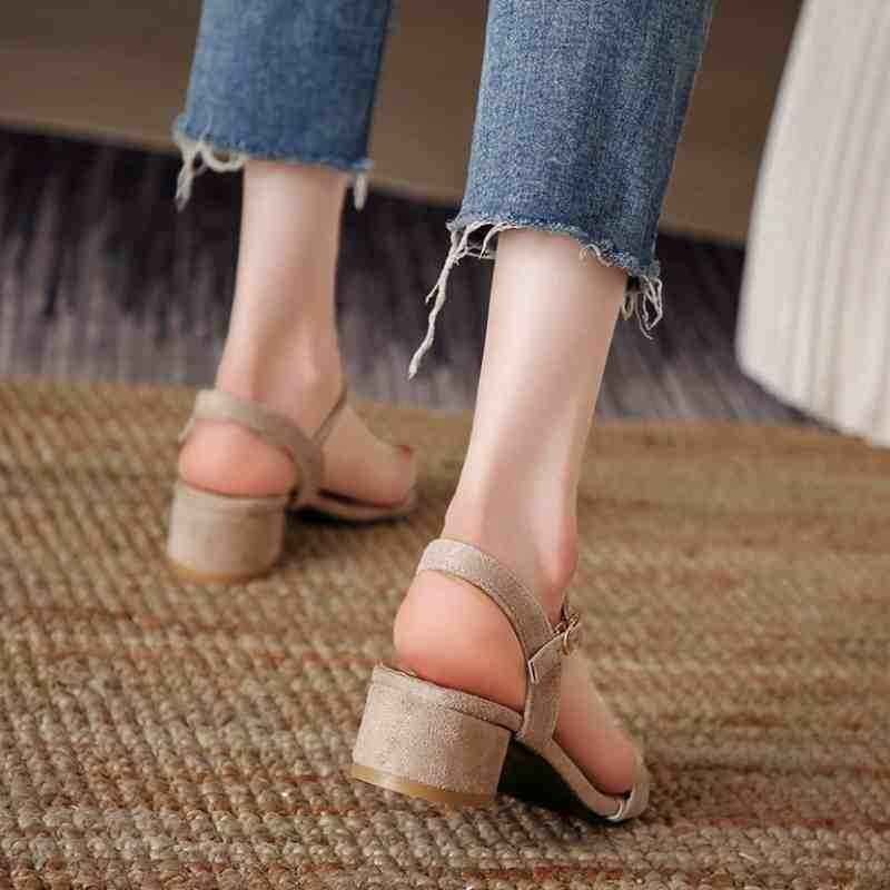 細いストラップとスエード調素材がエレガント ストラップサンダル