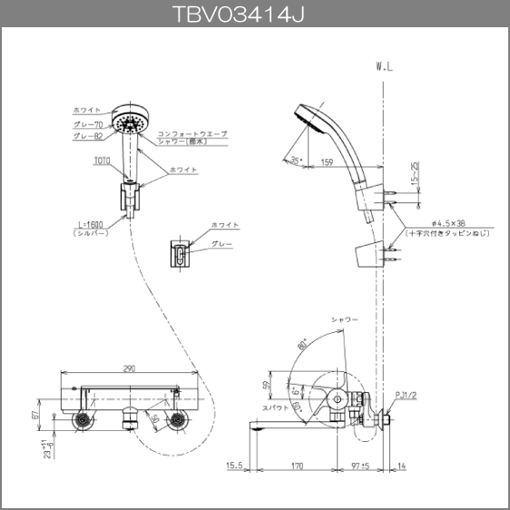 壁付サーモスタット混合栓 サーモシャワー アーチハンドル コンフォートウェーブ TBV03414J1 TOTO GGシリーズ