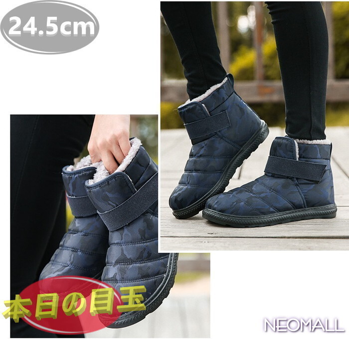 ユニセックス スノーシューズ 【870】 24.5cm 迷彩ネイビー ムートンブーツ スニーカー ウィンターブーツ 裏起毛 防水 防寒 防滑 冬用靴