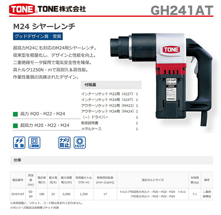 TONE(前田金属工業)GH241AT 適用ボルト:M20・M22・M24