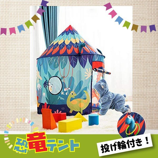 | ☆恐竜 トレジャーハウス キッズテント 【商品名】 恐竜 トレジャーハウス キッズテント 【素材】 ロッド:グラスファイバー 生地:210Tポリエステル 【サイズ】 直径100cm 高さ135cm 【付属品】 ■輪投げリング ■収納袋 【この商品の特徴】 ◆恐竜時代にタイムスリップ!探検気分が味わえるキッズテントが登場です♪ ◆秘密基地にして自分だけの楽しい空間で遊べるプレイテントです。 ◆投げ輪付きでプラスアルファの遊び方もできちゃう★ ◆安全設計でお子様もママも安心! ◆メッシュ素材なので暑さ対策! ◆折りたたみもできてコンパクト!。収納、携帯に便利な専用バッグ付きです! | ||||