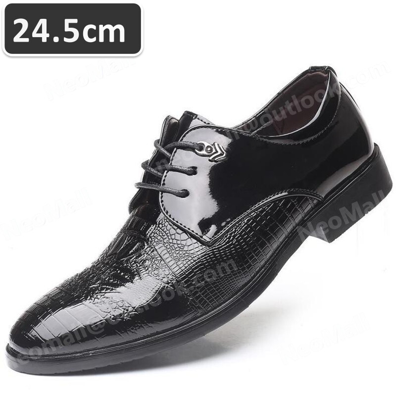 PUレザー メンズ ビジネスシューズ ブラック サイズ 24.5cm 革靴 靴 カジュアル 屈曲性 通勤 軽量 インポート品【n034】