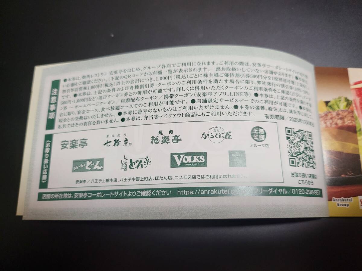 ■安楽亭 株主優待券 500円券(税込) 1~26枚 2025年12月末日有効■