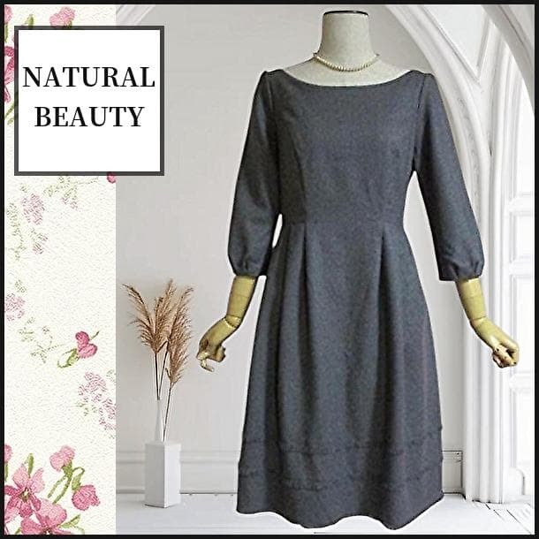 【ナチュラルビューティー】ワンピース ウール ラメ グレー学校行事お食事会38クリーニング済NATURAL BEAUTYフィット&フレア 匿名発送
