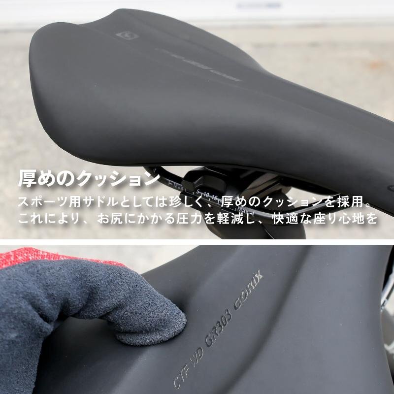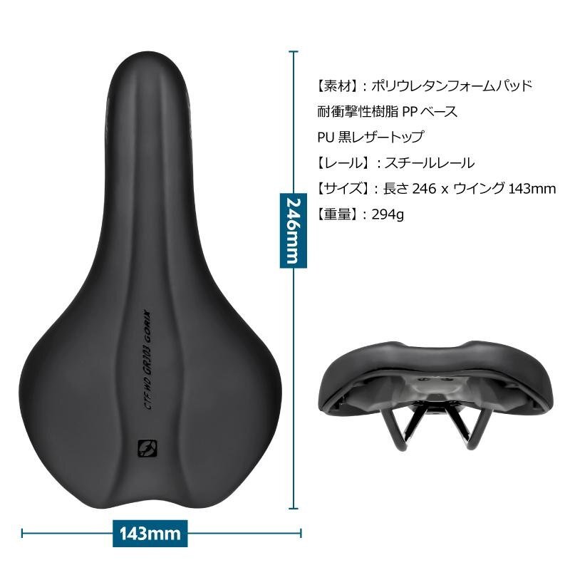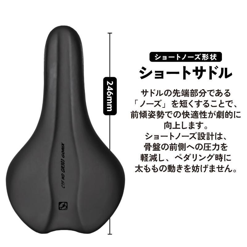 GORIX 自転車サドル CTF WD GR303 「ショートサドルで快適なライドへ」 このスポーツサドルは、厚めのクッションとわずかにカーブ形状した座面で、自転車ライダーにフィット感を提供します。 全長246mmのショート設計により、ペダリング時の動きを妨げず、長時間のライドでも疲れにくい設計です。 トップには耐久性・防水性に優れたPVCブラックレザーを採用し、悪天候や過酷な使用にも安心して使えます。 さらに、内部にはPUポリウレタンフォームパッドを採用し、クッション性を高め、お尻への衝撃をしっかりと吸収。 座面には浅い溝が施され、軟部組織への圧迫を軽減することで、快適なライド姿勢をサポートします。 マウンテンバイク、ロードバイク、クロスバイクなど、様々な自転車に適応し、スポーツサイクリストから日常使いのライダーまで、あらゆるシーンで快適な走りを実現する万能サドルです。 リーズナブルな価格設定となっているため、「ショートサドルを試してみたい」という初心者の方にも最適です。 快適さとデザインの両方を求めるあなたに、ぜひお試しいただきたいサドルです。 特徴 ●スポーツサドルでは厚めのクッションモデル ●ショートサドル(246mm) ●耐久性、防水性に優れるPVC黒レザートップ ●クッション性に優れたPUポリウレタンフォームパッド ●軟部組織へのプレッシャーを軽減する目的の浅い溝 ●マウンテンバイク、ロードバイク 、クロスバイクなど様々な自転車に 【ショートサドル】 近年ロードバイクを中心に人気が高まっている種類にサドル。 サドル全体がコンパクトなため、ライディング時のポジション調整がしやすく、スムーズなペダリングを実現。 【短いノーズ】 太ももとの干渉を防ぎ、スムーズなペダリングが可能に。 特にダンシングや前乗りポジションを多用するライダーにとって理想的な形状です。 【厚めのクッションモデル】 スポーツ用サドルとしては珍しく、厚めのクッションを採用。 これにより、スピードを重視しつつも、お尻にかかる圧力を軽減し、快適な座り心地を提供します。 【トップ素材にはPVC黒レザー】 表面素材には耐久性と防水性に優れたPVC製の黒レザーを採用。 汚れや摩耗に強く、見た目にも高級感があるため、長期間美しい状態を保つことができます。 【中央に溝】 中央に浅い溝を配置することで、前立腺への圧力を軽減。 敏感な部位への負担を減らし、特に長時間のサイクリングにおいて快適性を向上させています。 【ロングライドモデル】 長時間のライドに特化した設計で、クッション性と圧力分散性能が強化されています。 ツーリングや長距離サイクリングを楽しむライダーに最適なモデルです。 【サドルレールのメモリ】 位置を記録するメモリ機能により、毎回同じポジションを簡単に再現でき、ライディングの効率性が向上します。 【商品内容】:自転車サドル 【サイズ】:長さ246 x ウイング143mm 【重量】:294 g 【レール】:スチールレール 【仕様】:ポリウレタンフォームパッド、耐衝撃性樹脂PPベース、PU黒レザートップ 商品は入荷によりキズがある場合があります。 傷や細かい汚れが気になる方や神経質な方は入札をお控え下さい。 入荷時期により予告無く一部仕様変更する場合が有ります。 カラーはディスプレイ種類環境等により実物と異なって見える場合がございます。 |