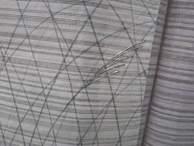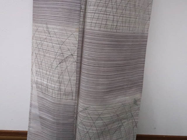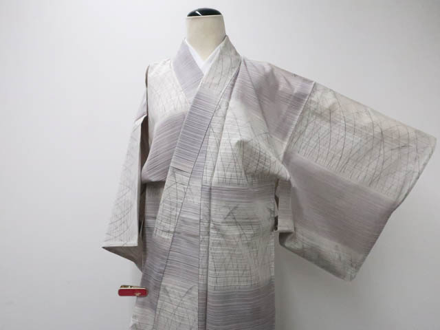 リサイクル商品のため、上衽にしみがございますがご着用いただけると存じます。 地色は 薄灰紫です。 1枚目の画像が近いお色かと思われます。 素材は正絹です。 |
