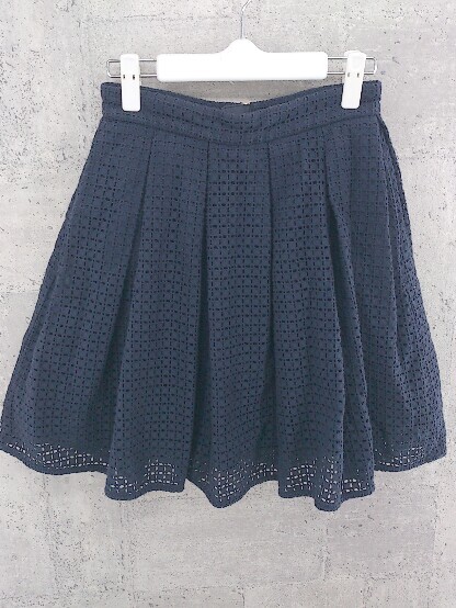 ◇ Ray BEAMS レイ ビームス レース 膝丈 フレア スカート サイズ0 ネイビー *