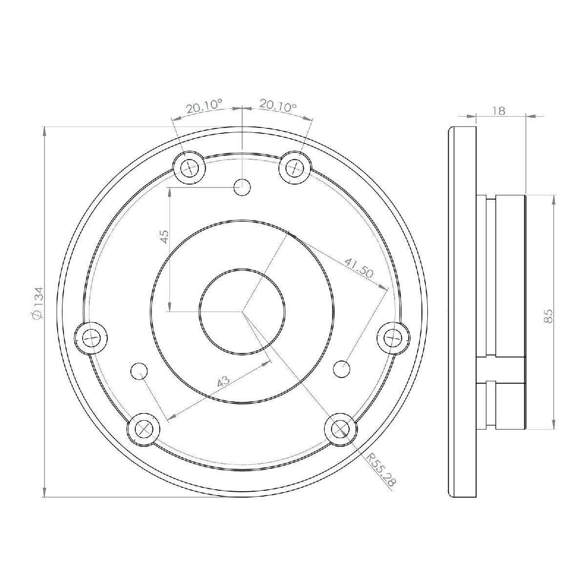 商品名:SD019-ジッツオ5型三脚用対応 タカハシEM/Skywatcher赤道儀用アダプター ---------------------------------------------------------------- 商品説明: SD019-ジッツオ5型三脚用対応 タカハシEM/Skywatcher赤道儀用アダプターの出品です。 対応赤道儀: TAKAHASHI EM1S/EM10/EM11/EM200シリーズ赤道儀 SKY-WATCHER EQ6/AZEQ6GT赤道儀 対応三脚: MORE BLUE G50シリーズ大型カーボン三脚、ジッツオ5型三脚、またそのたφ85マウント互換三脚 アダプタの表面に6個のM6低頭ボルト/鍋ネジ用の座繰り穴がございます。 他所への取付などにご活用ください。 基本スペック: 材質:6061アルミニウム合金 重さ:520g 表面加工:梨地加工、ブラックアルマイト 詳細寸法は図面にてご確認ください。 出品対象は写真1にあるアダプタ本体、水平支持棒2種類、水平支持棒取付用M6鍋ネジ、六角レンチになります。 赤道儀とり付け用ねじ別途ご用意ください。 タカハシEM赤道儀の場合、純正ネジそのままご使用できます。 SkywatcherEQ6/AZEQ6赤道儀の場合、別途M12ネジご用意する必要がございます。 水平支持棒取付位置(3か所): センターから41.5㎜ センターから43㎜ センターから45㎜ |