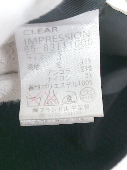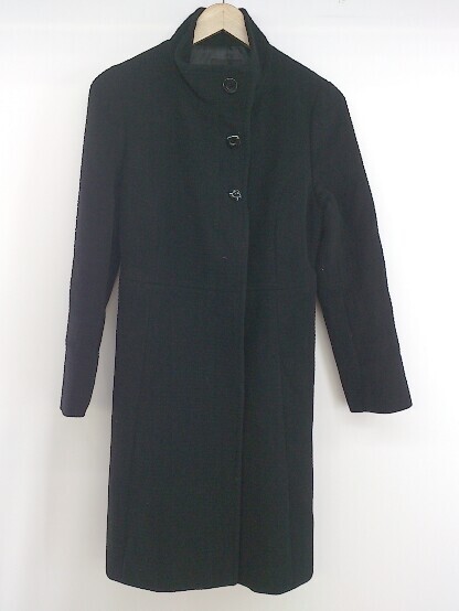 ◇ ◎ CLEAR IMPRESSION ウエストベルト アンゴラ混 長袖 ハイネック コート サイズ 3 ブラック レディース P