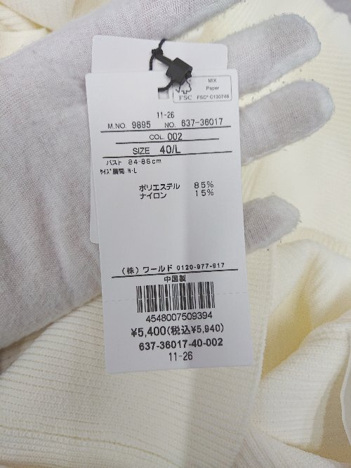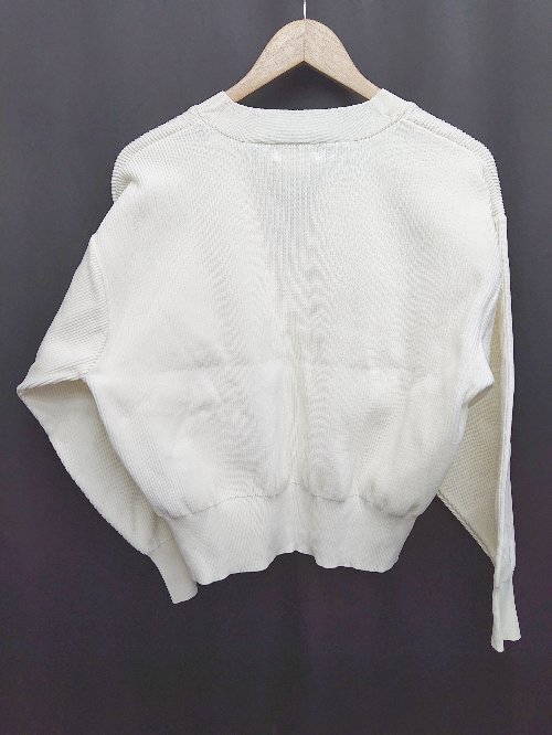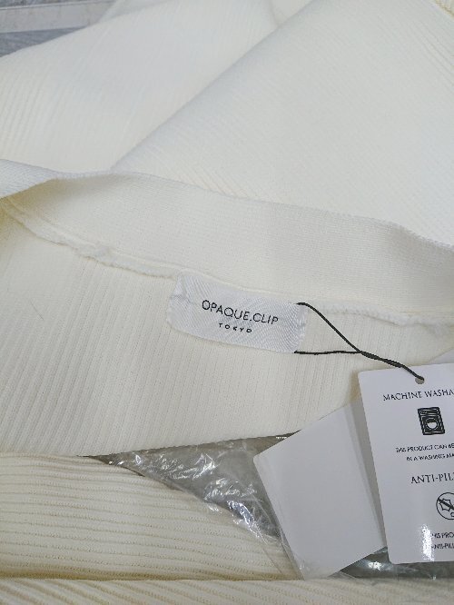 ◇ ⊇ ◎ ●未使用● OPAQUE.CLIP タグ付き リブ 長袖 カーディガン サイズL ホワイト レディース P