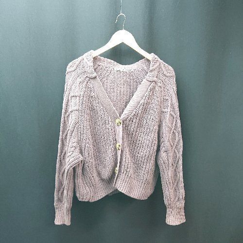 ◇ ROSE BUD ビッグボタン カジュアル 綺麗め オーバーサイズ 長袖 ニット カーディガン サイズF パープル レディース E