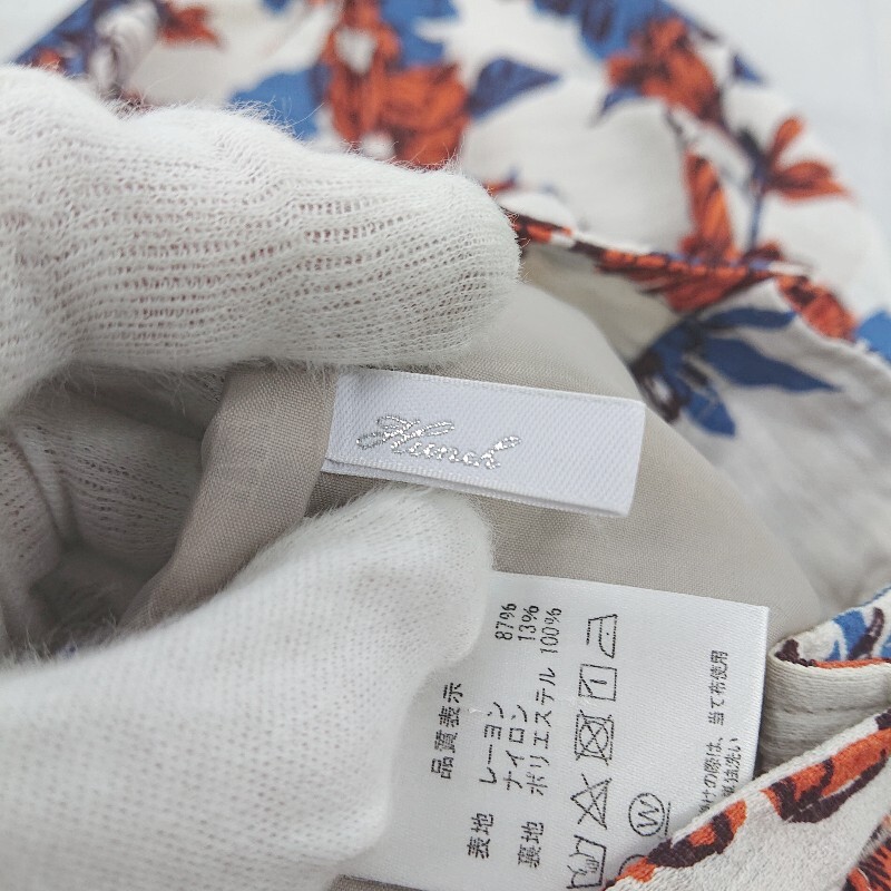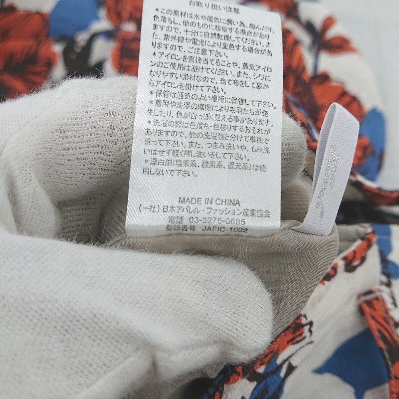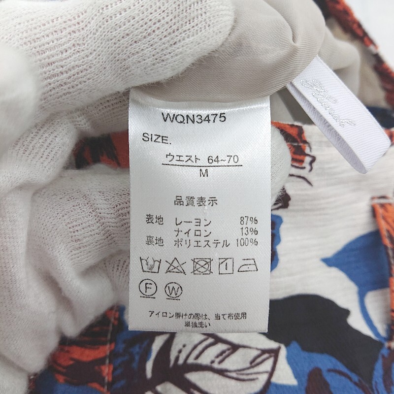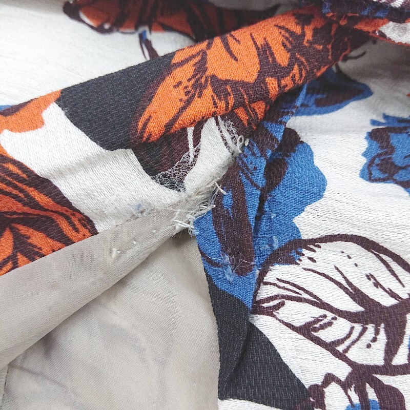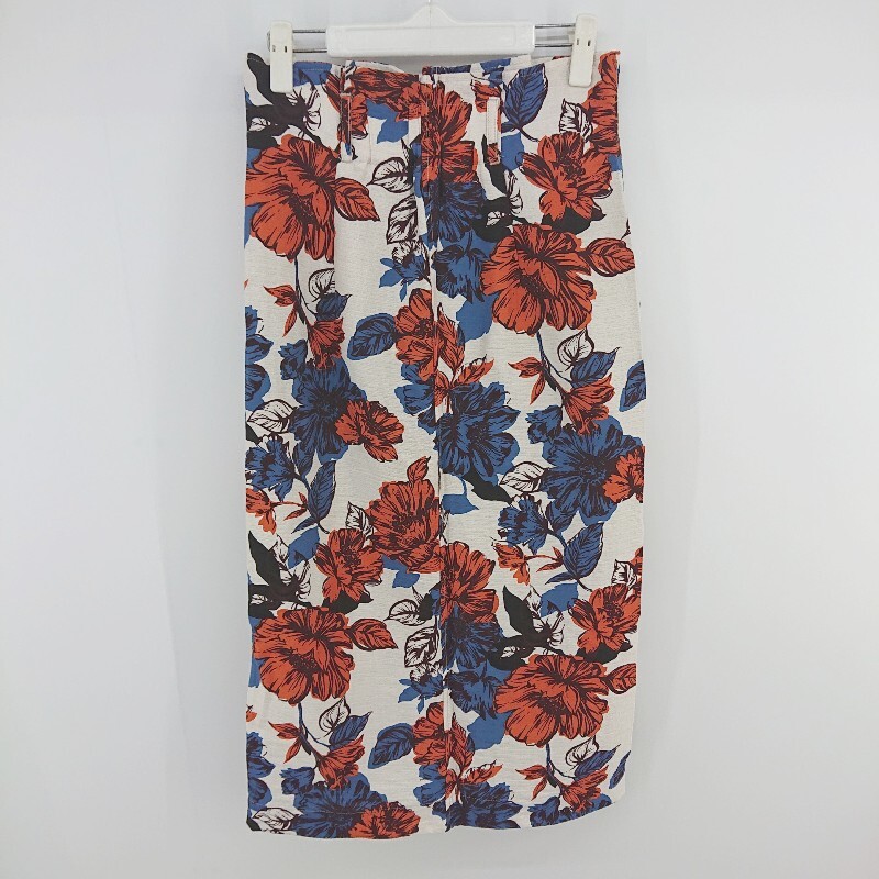 ◇ HUNCH 花柄 フロントスリット ロング タイト ナロー スカート サイズM オフホワイト ブルー オレンジ系 レディース P