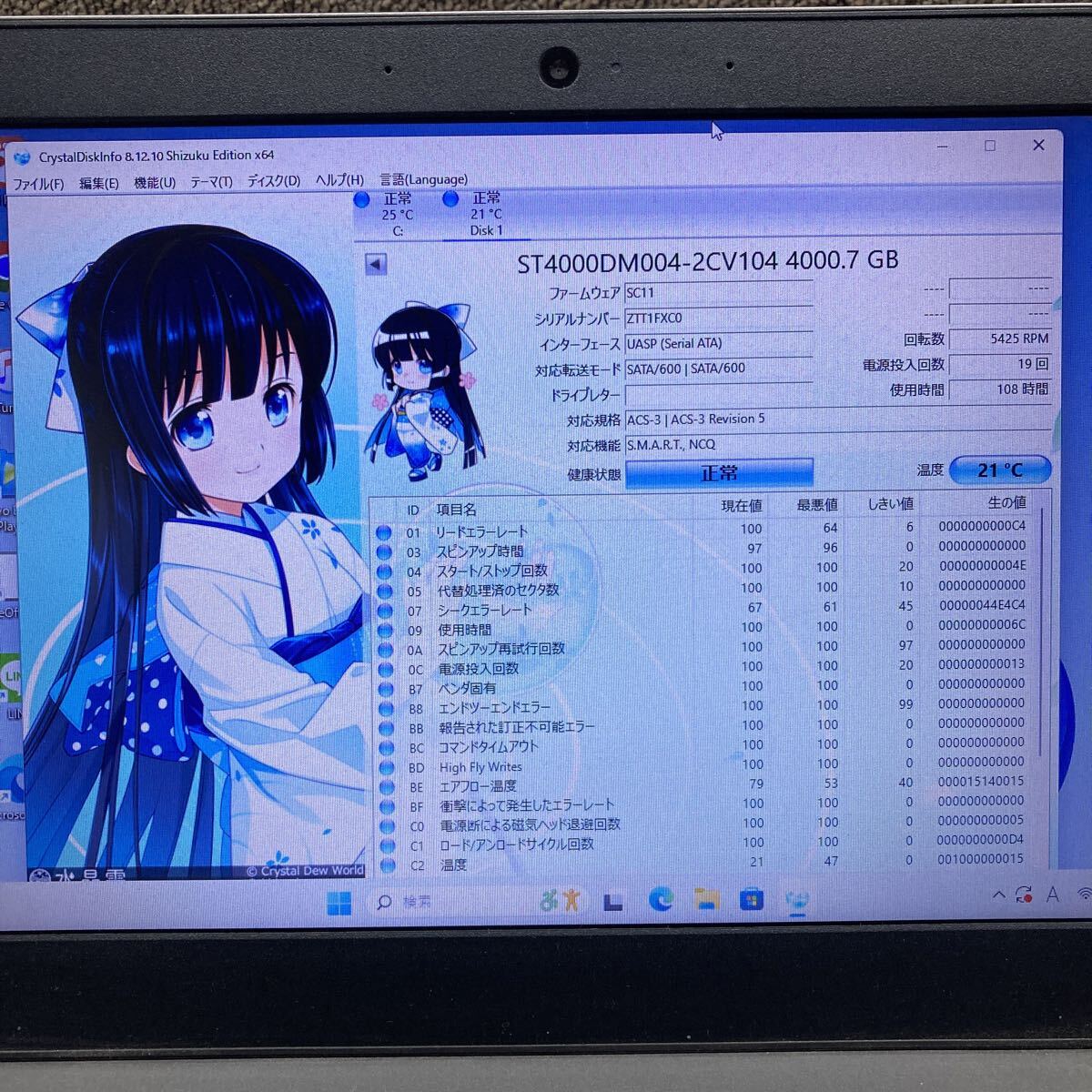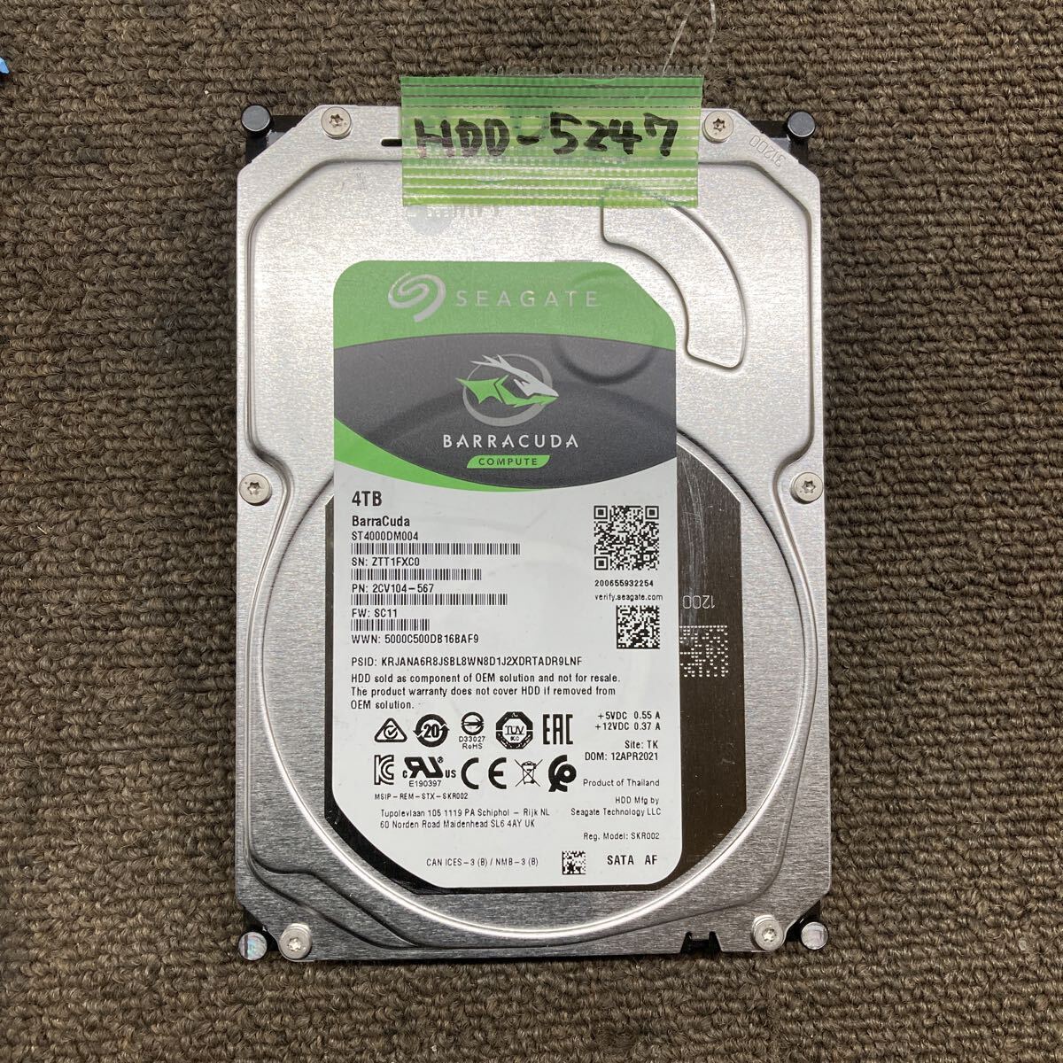 HDD-5247 激安 HDD4TB 3.5インチ SATA 108時間 内蔵HDD SEAGATE ST4000DM004-2CV104 Crystaldiskinfoにて正常品 中古