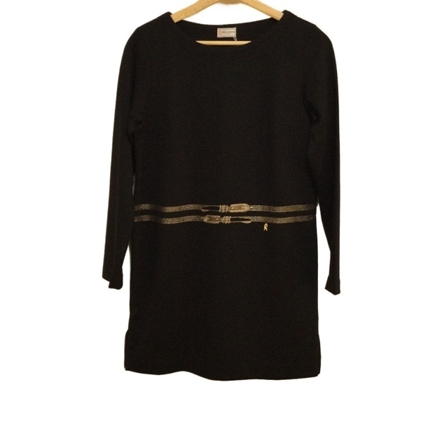 ロベルタ ディ カメリーノ Roberta di camerino サイズ9 M - 黒×ゴールド レディース クルーネック/長袖/ひざ丈/刺繍 ワンピース
