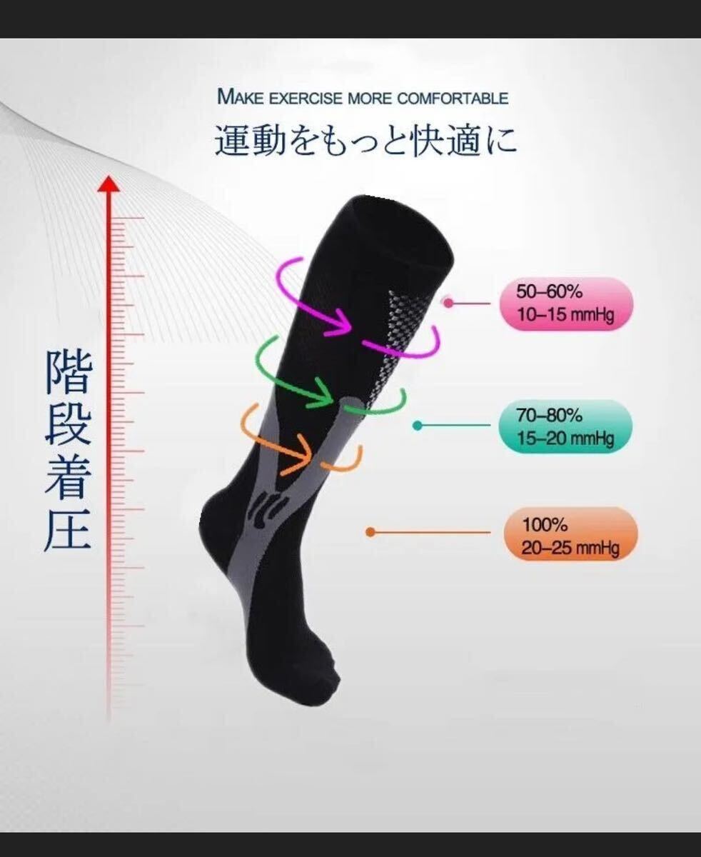 [Sweetimes社] コンプレッションソックス スポーツソックス パワーストレッチ 着圧靴下 ふくらはぎサポーター