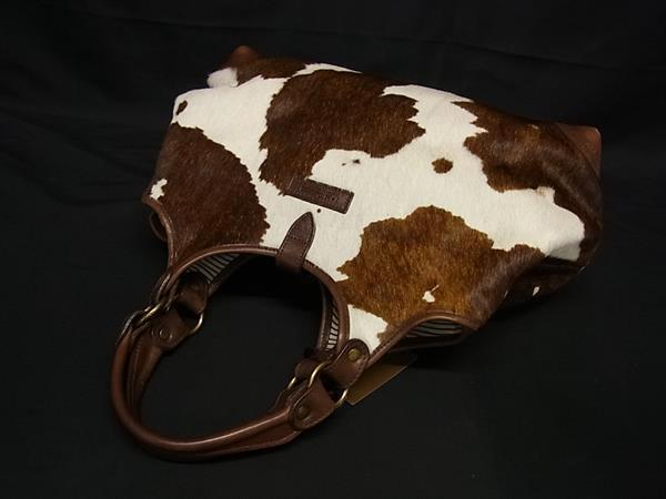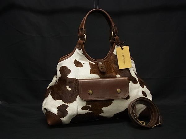 1円 ■美品■ J&M DAVIDSON ジェイアンドエムデヴィッドソン ハラコ×レザー 牛柄 2WAY ショルダーバッグ ハンドバッグ ブラウン系 FN8898