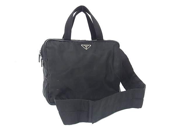 1円 PRADA プラダ テスートナイロン ハンドバッグ トートバッグ レディース メンズ ブラック系 FV3808