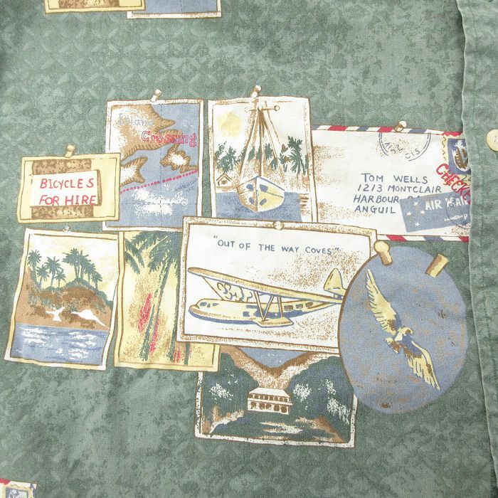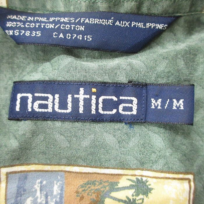【商品名】 XL★古着 ノーティカ 半袖 ブランド シャツ メンズ 90年代 90s 飛行機 コットン ボタンダウン 緑【spe】