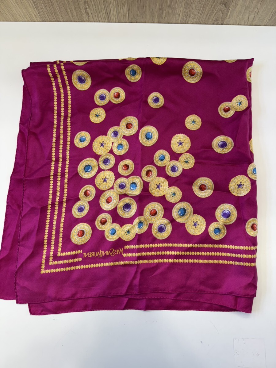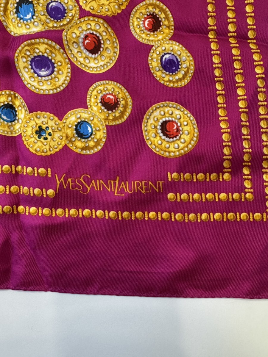 【中古品】Yves Saint Laurent シルク スカーフ 大判 ピンク 現状品