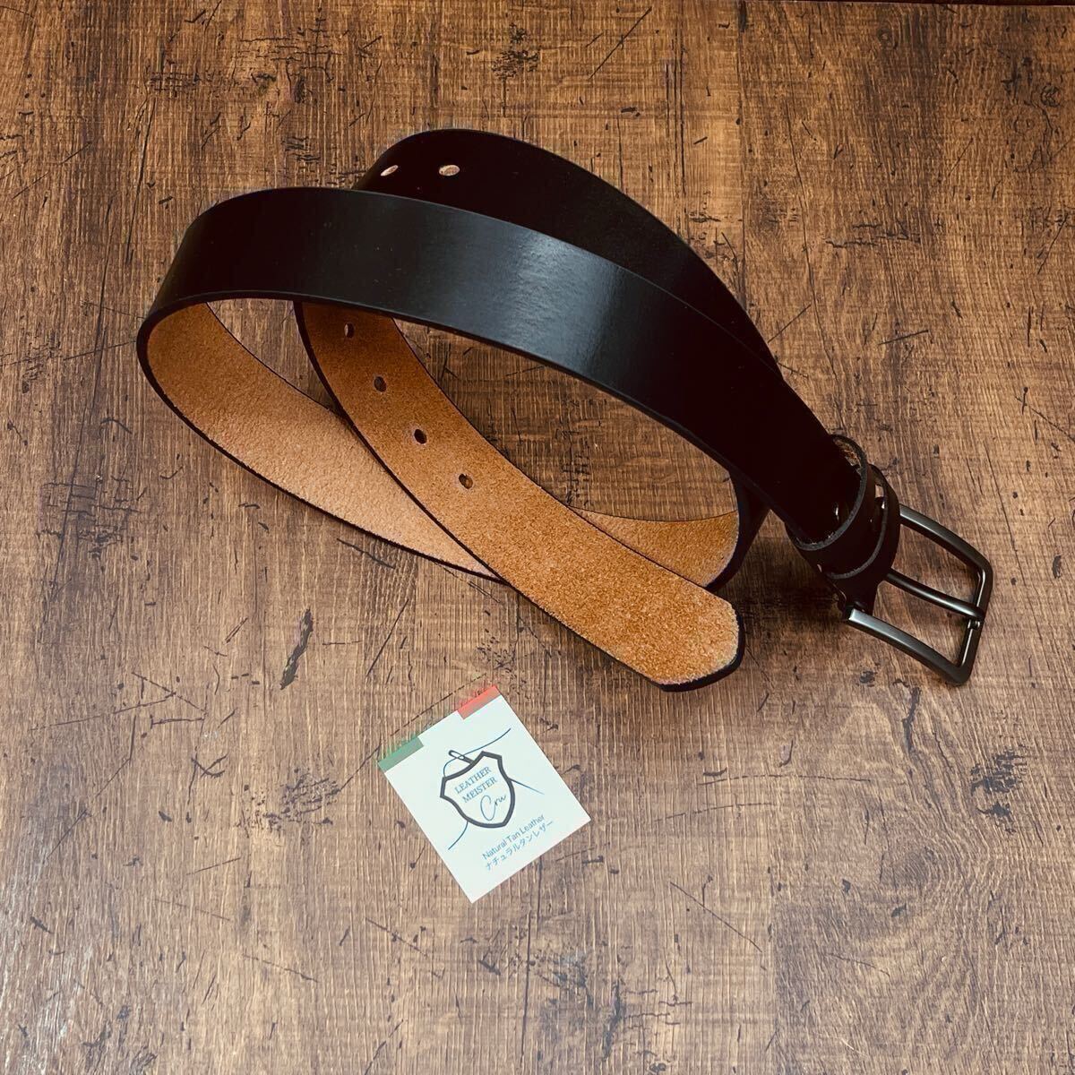 本革の醍醐味であるエイジングが存分に楽しめるナチュラルヌメ革を使用したレザーベルトです。使えば使うほどに味が出てきます。しっかりとした厚みで作られた重厚なガンメタブラック色のバックルが高級感を与えます。