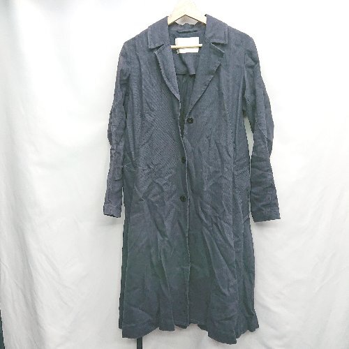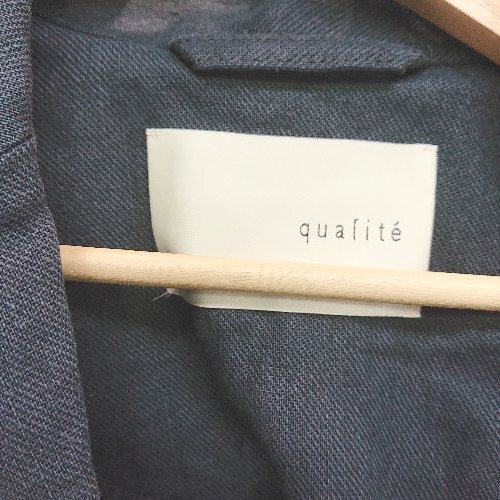 ◇ ⊂ qualiteカリテ リネン 長袖 リネンロングコート サイズ1 ネイビー系 レディース E