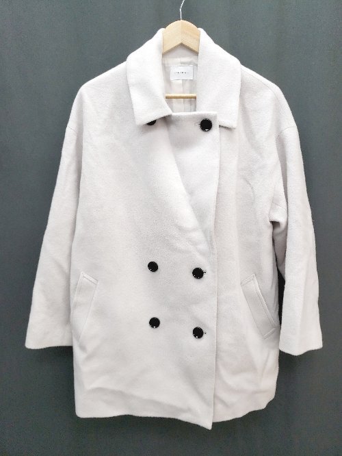 ◇ Doux archives ドゥアルシーヴ ウール混 裏地 きれいめ 長袖 Pコート ピーコート サイズF ライトグレー レディース P