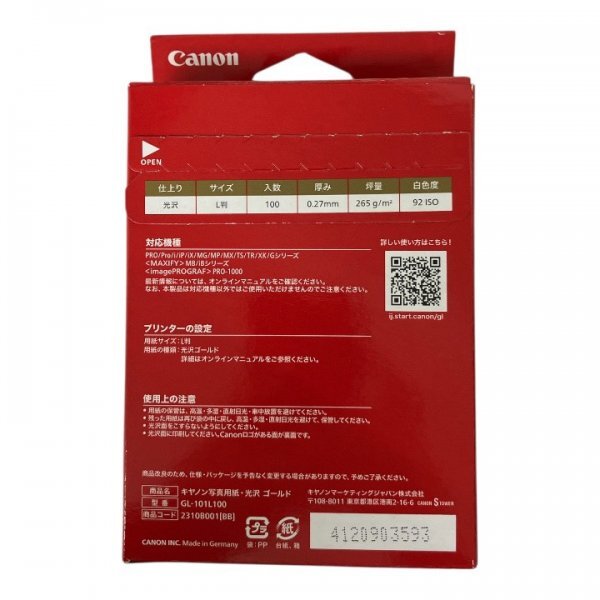 【未開封】Canon キヤノン 写真用紙・光沢 ゴールド L判 100枚 GL-101L100 純正インクジェット用紙【793】