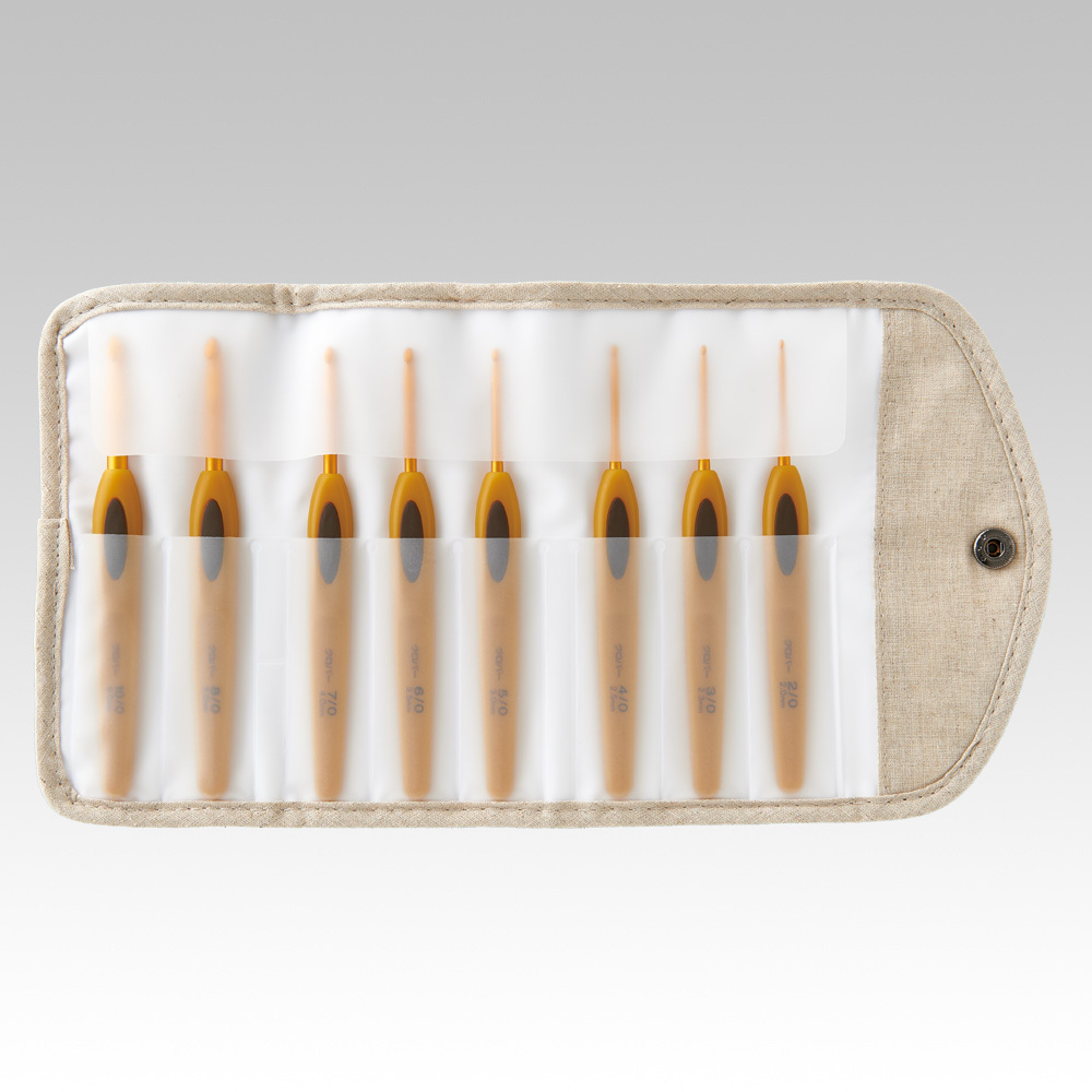 内容物:かぎ針「ペン-E」(2/0・3/0・4/0・5/0・6/0・7/0・8/0・10/0号)/キルティングケース入