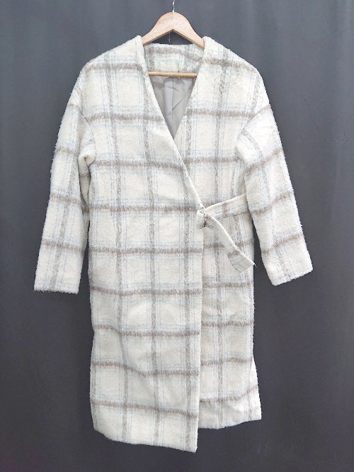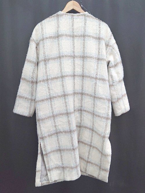■ ⊇ センス オブ プレイス バイ アーバンリサーチ 長袖 シャギーチェックコート サイズF ベージュ系 マルチ レディース E