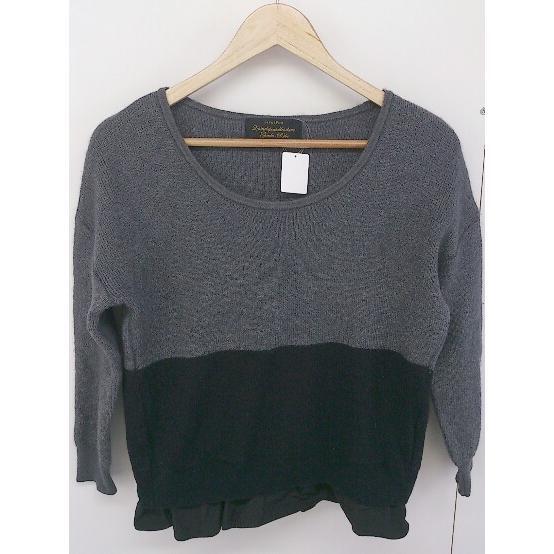 ◇ garde Robe nano universe 裾フレア バイカラー 長袖 ニット セーター サイズ F グレーブラック レディース