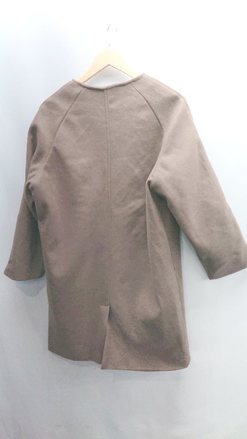 ◇ ⊇ JUNOAH ジュノア 長袖 ノーカラーコート サイズL モカブラウン レディース E
