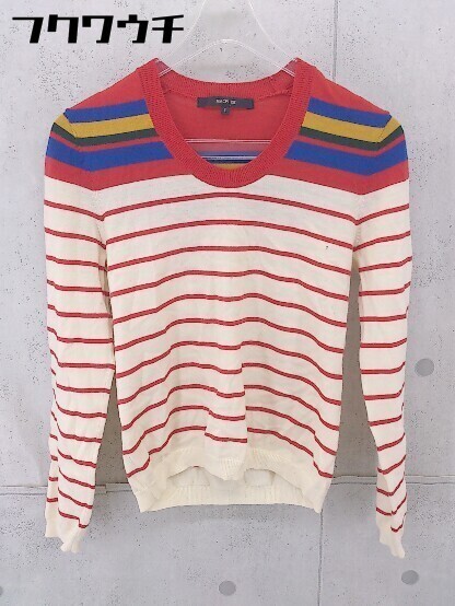 ◇ MACPHEE TOMORROWLAND ボーダー 薄手 ウール ニット セーター サイズ1 クリーム系 レッド レディース