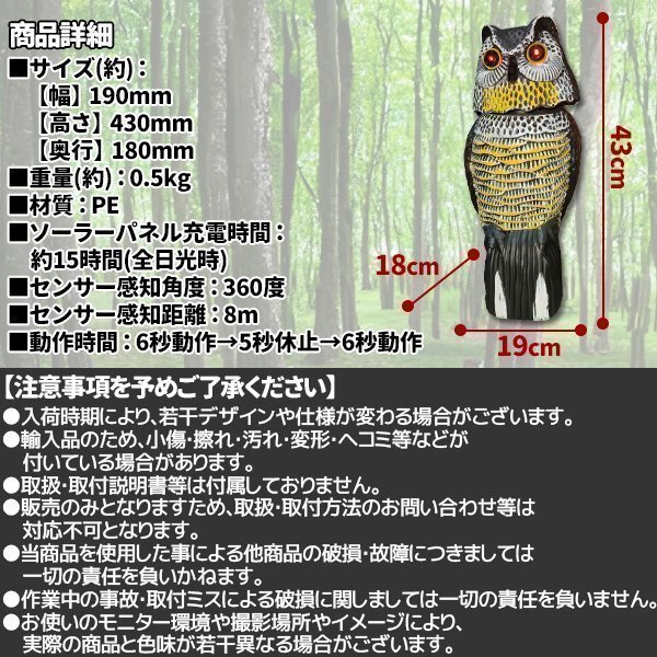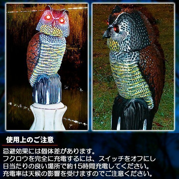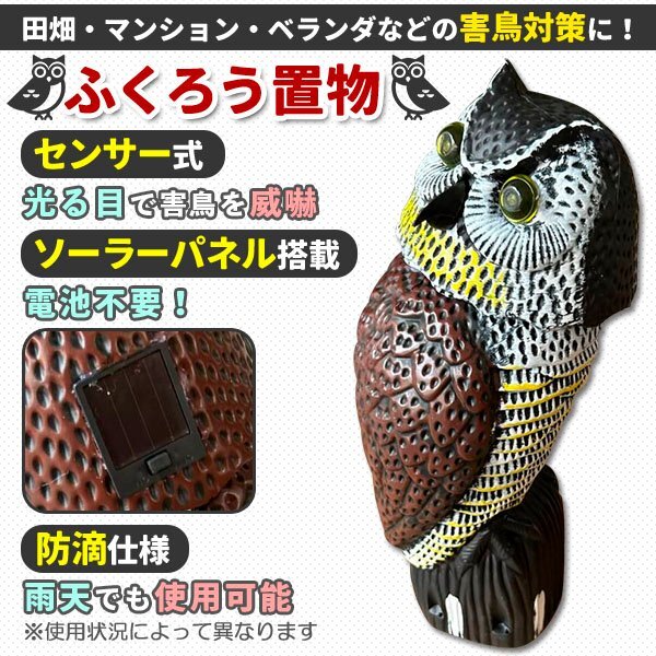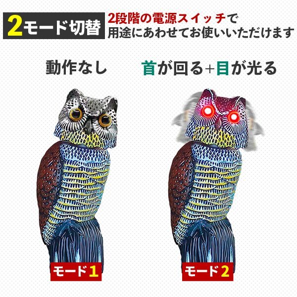 センサー式で首を振り、光る眼で害鳥を威嚇します。