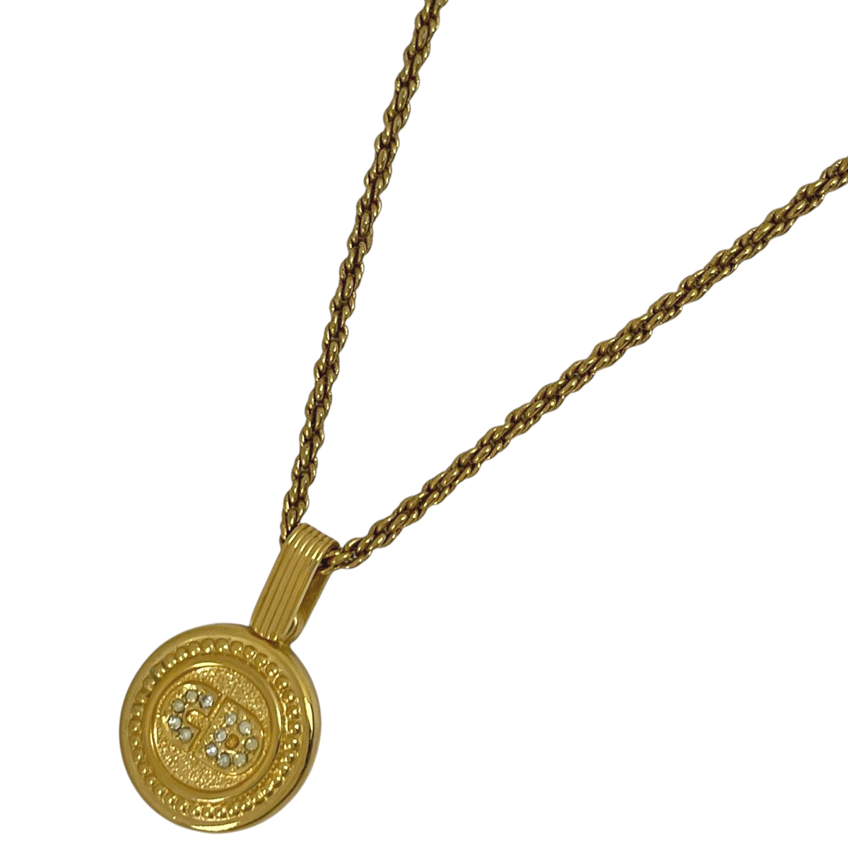 | クリスチャンディオール Christian Dior ロゴ ネックレス ラインストーン ラウンド ネックレス GP ゴールド レディース 【中古】 |