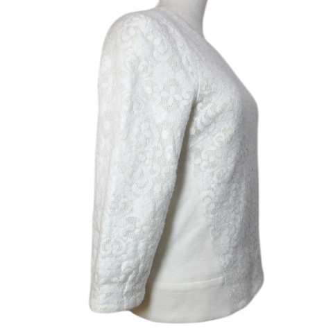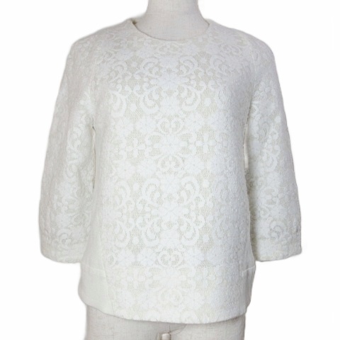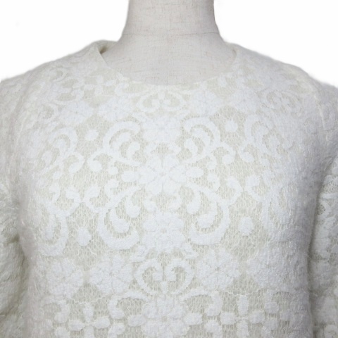 エポカ EPOCA THE SHOP&VOUSETES レースカットソー ニット 7分袖 プルオーバー 36 XS相当 白 ホワイト /X レディース
