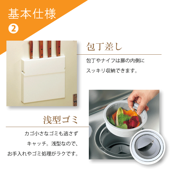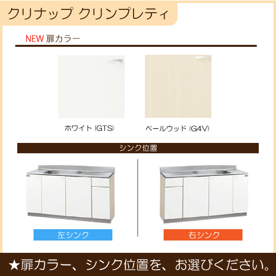 ■ 水槽(シンク)位置を、『右シンク』か『左シンク』よりお選び頂けます。