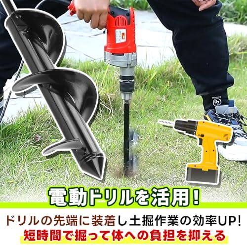 お持ちの電動工具にセットしスイッチを押すだけ!初心者でも簡単に土が掘れる園芸用アースドリルです。